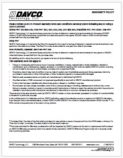 DAVCO Technology, LLC warrants these products to be free of defects in material and workmanship for two-years or 200,000 miles (whichever comes first) from the purchase date.