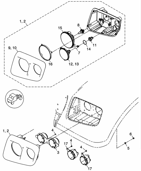 | 15 | LENS - HEADLAMP, REFLECTOR, 7 INCH, GLASS | GNR 209497RMY |